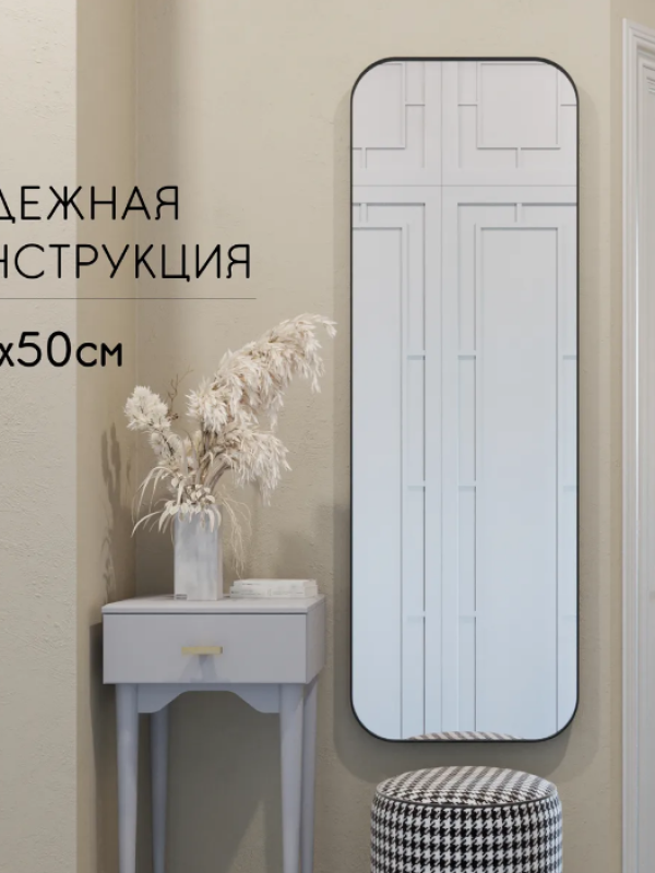 Зеркало «Evolve». Артикул GMZ-12-1/2/3 Эффектное настенное зеркало в тонкой металлической раме с закруглёнными углами можно с уверенностью назвать универсальным. Оно имеет прямоугольную форму и подходит как к классическим интерьерам, так и к современным. Крупный формат делает это зеркало функциональным с возможным размещением в помещениях различного назначения: спальне, ванной, гостиной, коридоре. Рама выполнена из высокопрочного металла, поэтому зеркало устойчивое и безопасное. Зеркальное полотно бельгийского производства, бренда AGC, продукция которого высоко ценятся во всём мире.Характеристики:– габаритные размеры – 1500х500х40 мм, металлический профиль тонкий – 4х40 мм, радиус закруглений – R100;